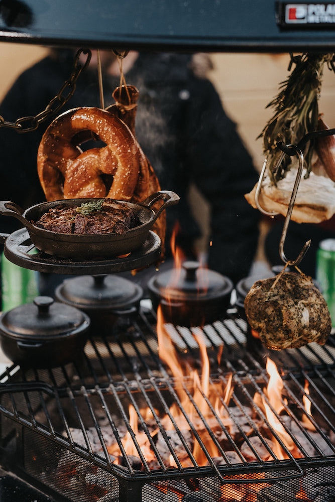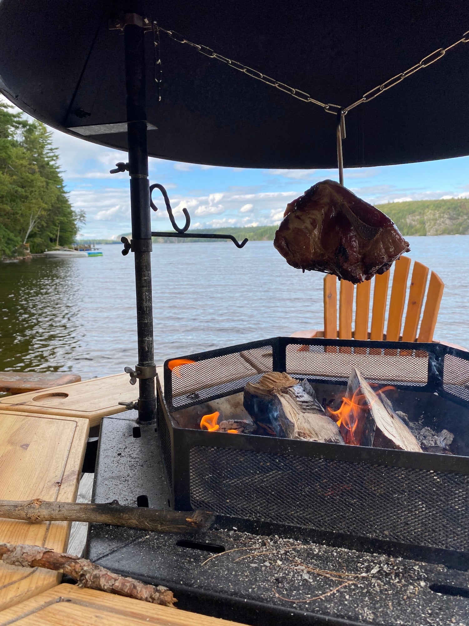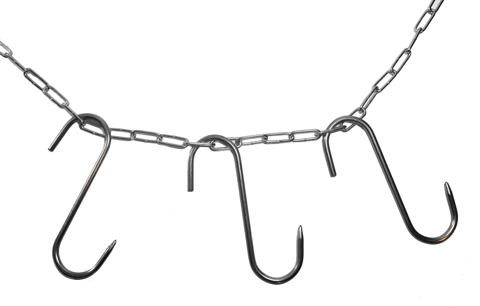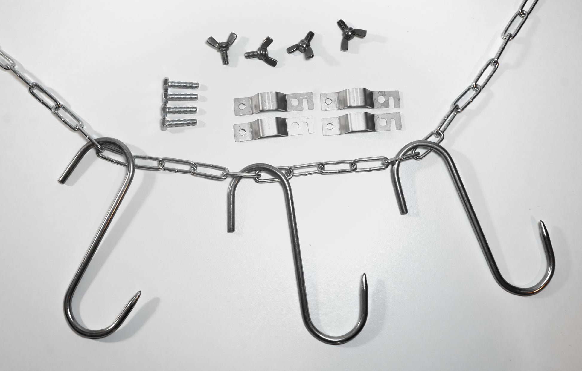 Traditional Stainless steel smoking system lets you hang your special cuts of meat, veggies and garlic high over the fire from a chain with any one of the three hooks provided.